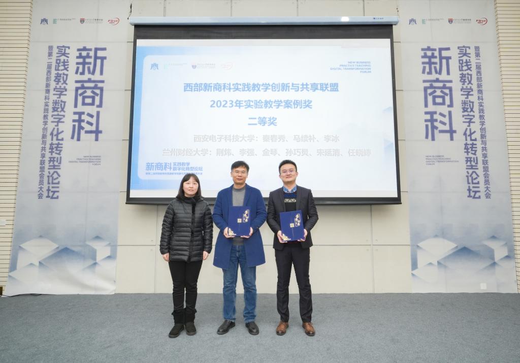 12月9日,新商科实践教学数字化转型论坛暨第二届西部新商科实践教学创新与共享联盟会员大会在西安成功举办。本次大会上我院正式获得会员单位授牌,同时由荆炜教授、李强副教授带队完成的实验教学案例荣获实验教学案例二等奖。
