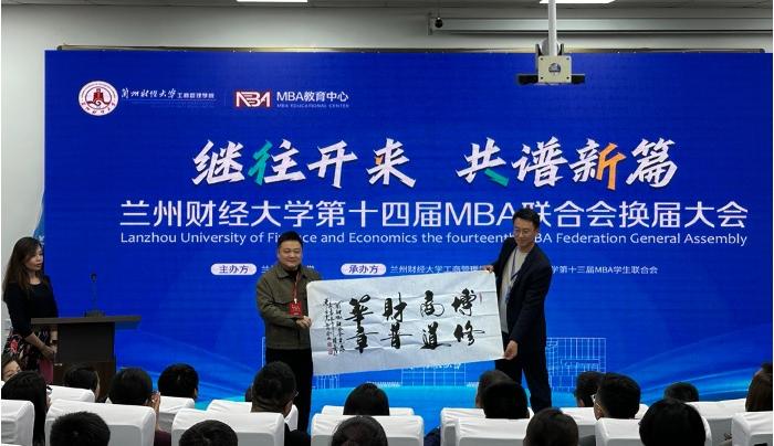 中国MBA西北峰会理事会理事长李伟辉、主席周乐,77779193永利集团校友会MBA校友分会会长沈延华,首届77779193永利集团MBA联合会主席杨宗瑜分别致辞。嘉宾代表还向学联赠送了书法作品,以表达对新一届学联的美好祝愿。