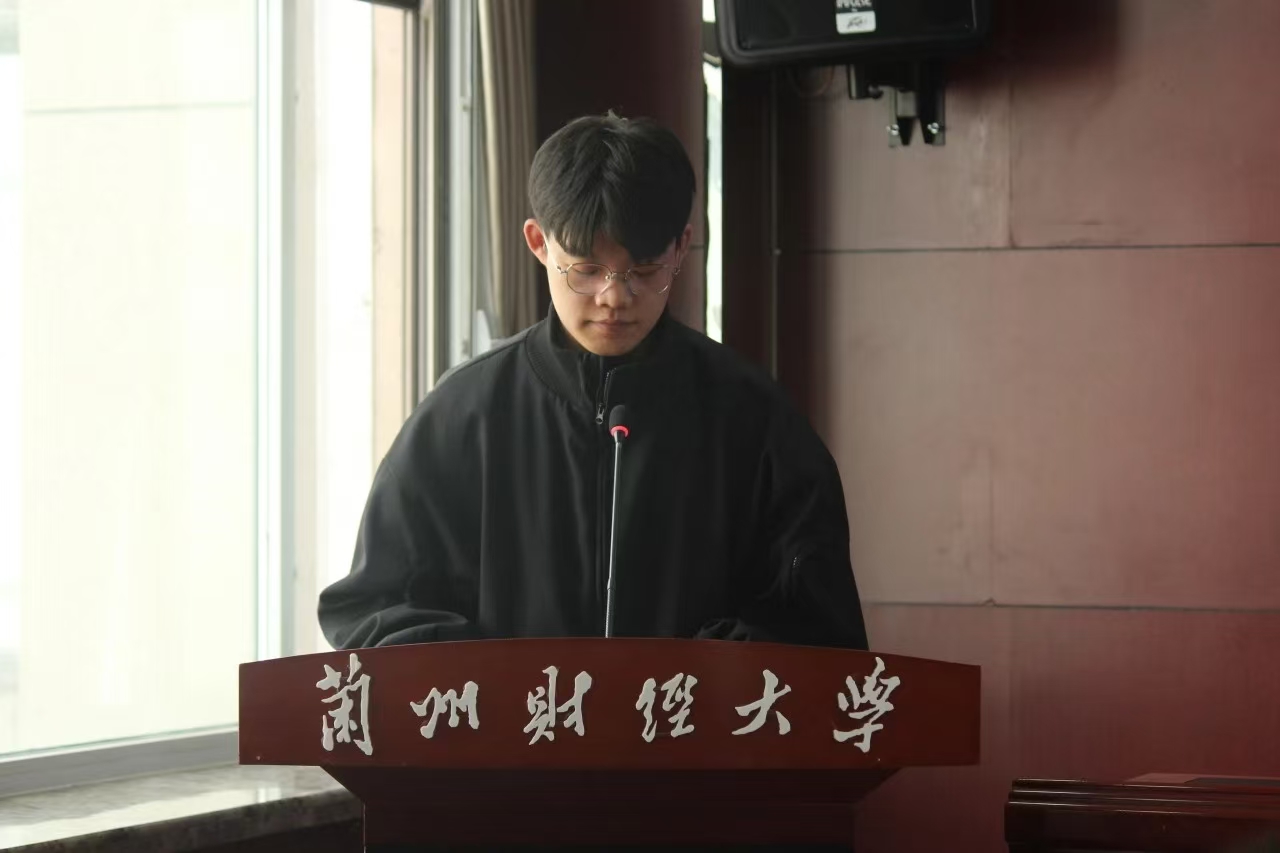 刘一铄同学代表参加本次实习全体学生庄重承诺,会在实习期间保证安全、严守纪律、虚心学习,展现兰财学子良好形象。