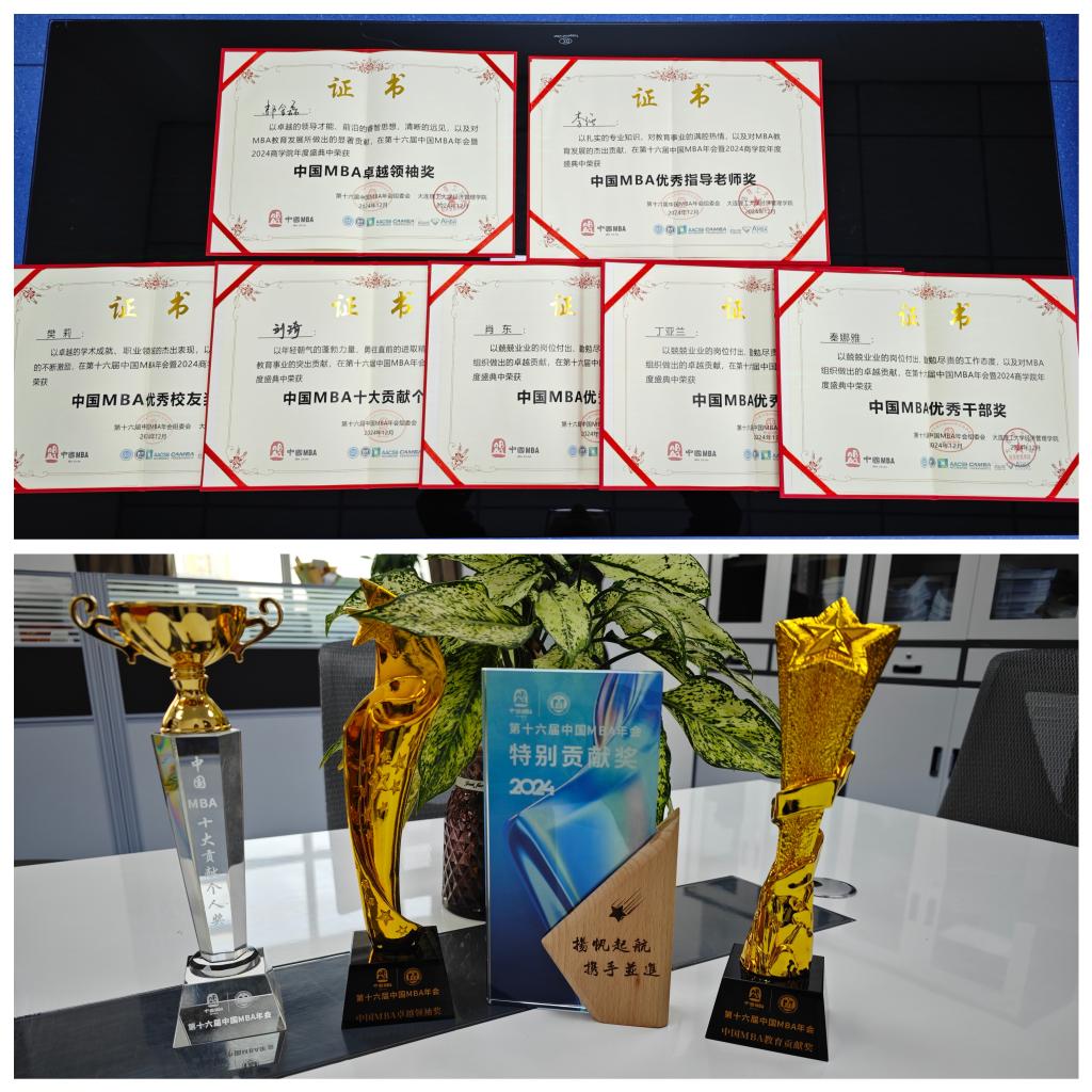 本次年会,师生们还荣获多项个人荣誉,其中郝金磊院长荣获“2024中国MBA卓越领袖”奖、金融学院王霞副院长荣获“2024中国MBA优秀指导教师”奖、肖东同学获得“2024中国MBA优秀学生干部”奖、2021级校友李董荣获“2024中国MBA优秀校友”奖,同时,多位同学成功入选“2024中国MBA新锐100”。