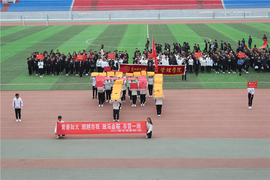 运动会开幕式上,17级各班的方阵表演热情洋溢、别具创意,他们依次迈着整齐的步伐,身姿挺拔、精神抖擞走过主席台,响亮的口号声响彻操场,展现出各班同学们势在必得的决心和勇于拼搏的精神面貌。