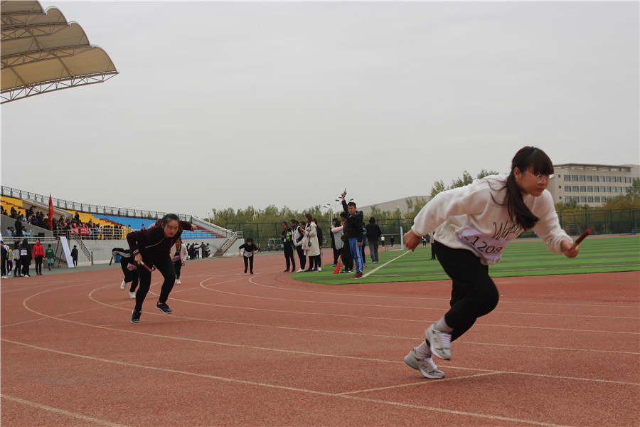 开幕式结束后,比赛正式开始。本届运动会共包含16个比赛项目,有比拼爆发力的100米、200米短跑项目,有体现团队合作精神的4×100米、4×400米接力项目,有考验运动员耐力和毅力的3000米和5000米长跑项目,有展示力量与技巧的铅球比赛,也有挑战弹跳能力的跳高、跳远比赛等。运动场上,比赛项目一个个有条不紊地进行着,运动员们斗志昂扬、坚持不懈、奋勇争先,用努力与汗水取得一个又一个突破与收获;观众席上,同学们不间断的加油呐喊声为运动员们加油打气,现场气氛热烈;而比赛场地上的裁判们也在一丝不苟地工作着,保障比赛现场的公平与公正;其他工作人员们也不畏寒风,坚守在自己的岗位上,保障整个运动会井然有序的进行。