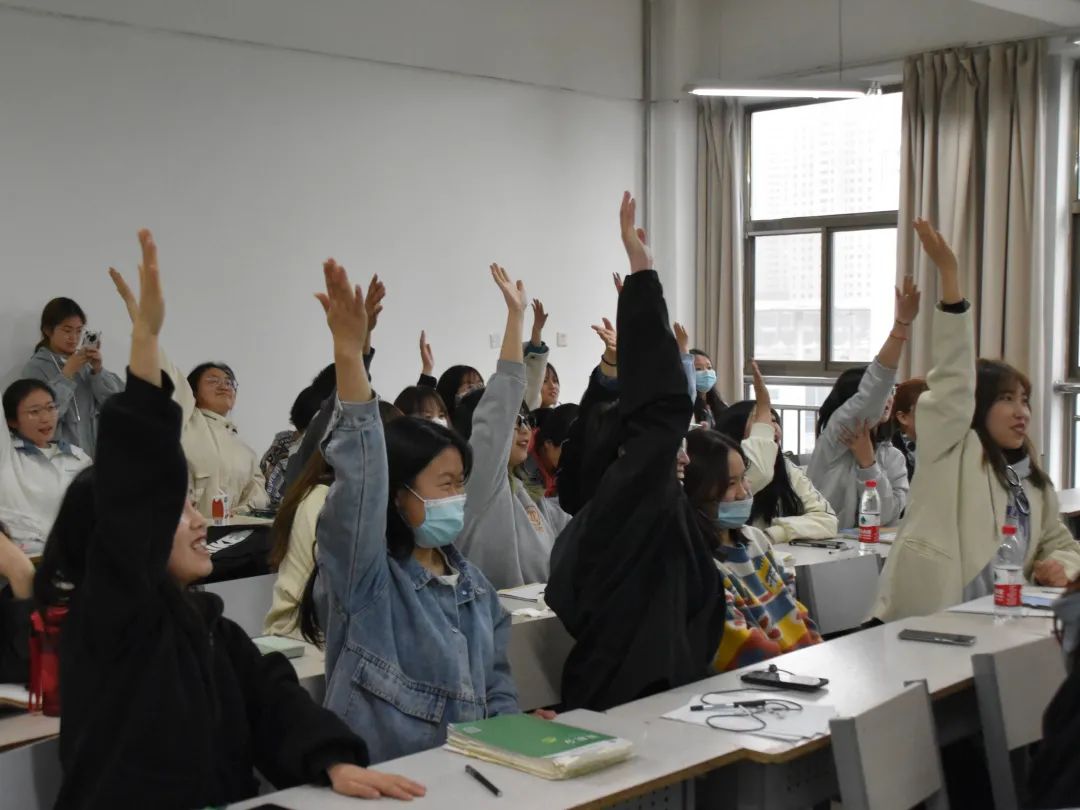 本次活动分为热身题、轮答题、中场互动以及抢答题四个环节。每个班以小组为单位,共分为六组,最后总分前六名的班级进入决赛。通过热身题小试牛刀后,各班同学逐渐进入状态。轮答环节中,同学们胸有成竹、积极作答。极具趣味性的中场互动环节,更是充分调动了每一位同学的积极性,大家争相回答,竞争激烈,不分高下,比分一度陷入胶着。最终,经过长达半个小时的“头脑风暴”——抢答环节后,各班小组之间终于分出了胜负。