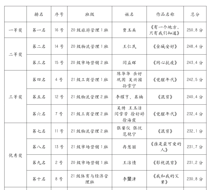 在同学们的喝彩中,本次比赛圆满落下帷幕。经评委评定,本次比赛的总分排名及获奖情况如下: