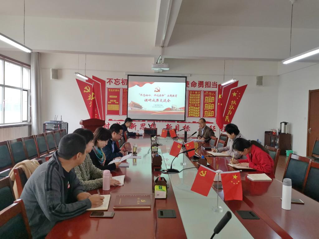 号会议室召开了“不忘初心、牢记使命”主题教育调研成果交流会。学校主题教育领导小组第四指导组米田同志到会指导,学院领导班子、各党支部书记、各系主任参加会议。会议由学院党委副书记牟凯主持。