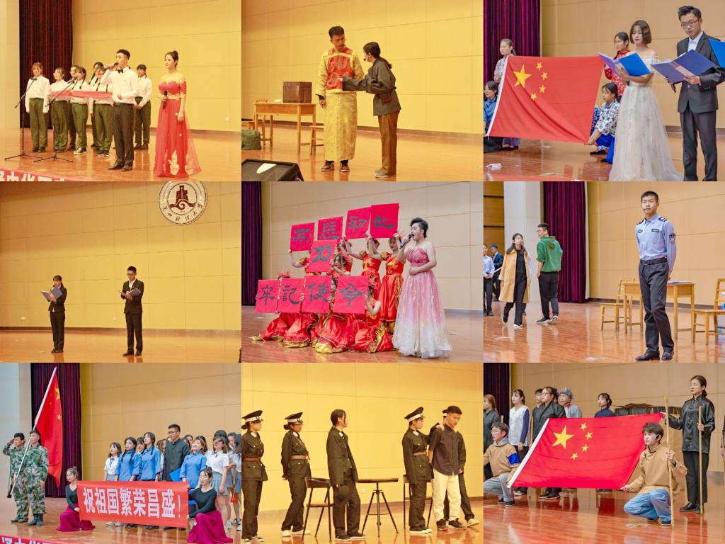 演出分为上下半场。上半场,首先由艺术学院音乐系同学带来开场歌曲《把一切献给党》,他们嘹亮雄厚、铿锵有力的歌声很快带动了现场的气氛;扎中华根,铸民族魂,我们要做面向世界的现代中国人,学生第一党支部带来的朗诵《民族魂》,同学们声情并茂,抑扬顿挫的节奏,铿锵有力的声音打动人了在场的每一位观众;学生第三党支部带来的小品《药方》,主要讲述了抗战时期日寇索要我国民间传世药方,真假“鬼子”同上门的故事,剧情一再反转,而药店老板却能巧妙应对;伴随着高昂的曲调,学生第九党支部带来的歌舞《走进新时代》将全场气氛再次带入高潮,大家挥舞着小红旗,深受节目感召;学生第六党支部带来的朗诵表演《重温红色岁月》,带我们追寻红色足迹,弘扬革命精神,重温中国共产党的初心和使命;学生第四党支部带来的历史剧《子孙满堂》,前半部分风趣幽默,随着时间的不断推进,情节氛围也逐渐深沉,折射出抗战时代革命党人的责任与担当。