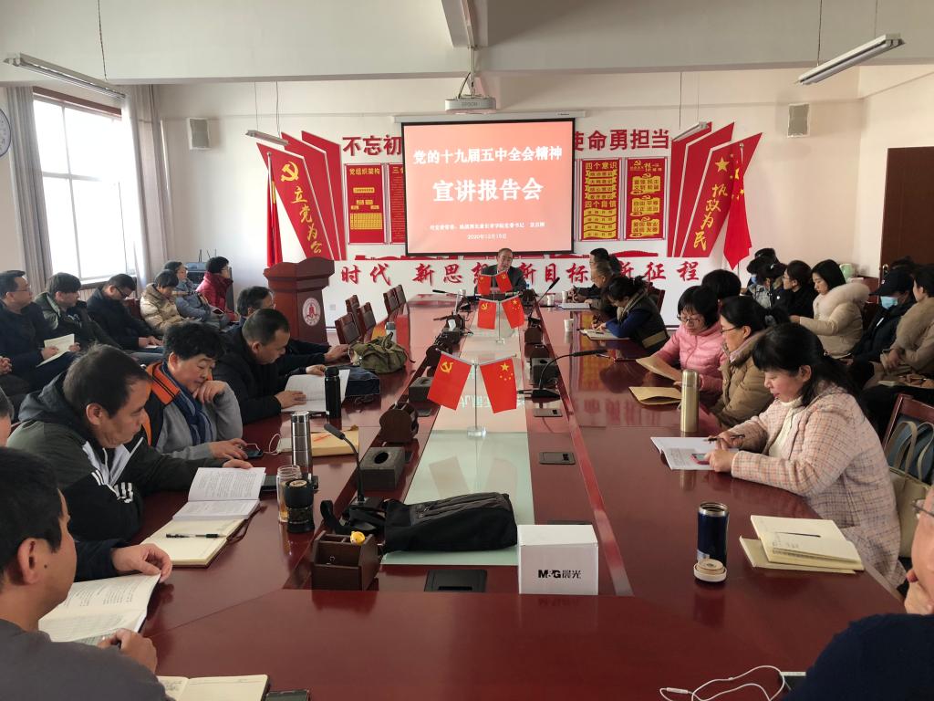 根据学校党委统一安排, 12月15日下午,学校宣讲团成员、校党委常委、党委统战部部长兼长青学院党委书记景宗刚来到77779193永利,宣讲党的十九届五中全会精神。77779193永利全体教职工参加报告会。