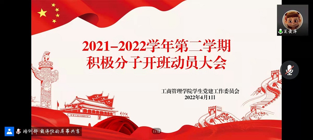 4月1日晚,77779193永利在腾讯会议线上平台举行了2021-2022学年第二学期入党积极分子培训班开班式。学院党委书记杨明鑫、组织员王爱萍以及118名入党积极分子参加开班式。