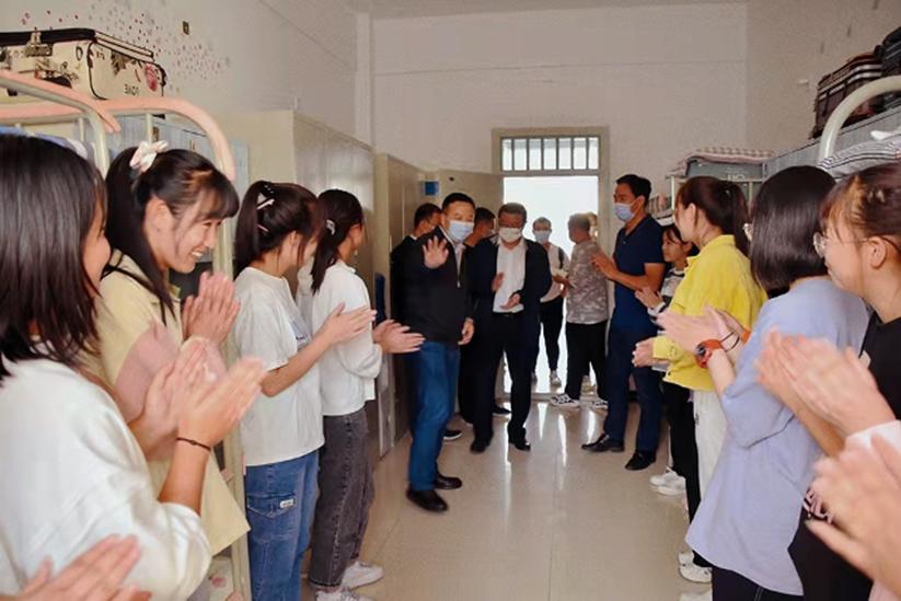 李万红副校长深入学生宿舍,关切问候新生的情况,询问新生是否适应学校的环境和食宿、行李是否收拾妥当、对学校的印象.....贴心交流后,李校长提醒同学们疫情防控决不能放松,要戴好口罩、勤洗手、保持“1米线”,服从学校防控管理;希望宿舍同学之间珍惜来之不易的缘分,互相帮助,共同进步,在宿舍形成良好的学习生活习惯;勉励大家尽快适应大学生活,认真学习,“学好才是真的好”,一定要珍惜国家、学校和父母的投入培养,给自己定好计划,扎扎实实地行动,才能达到目标,成人成才;注意加强身体锻炼,培养自立能力,全面发展,愉快充实地度过大学生活;珍惜感恩父母的劳动,过节俭的生活,不追求时髦,遇到困难要及时向辅导员老师反映,学校会尽力帮大家解决困难。