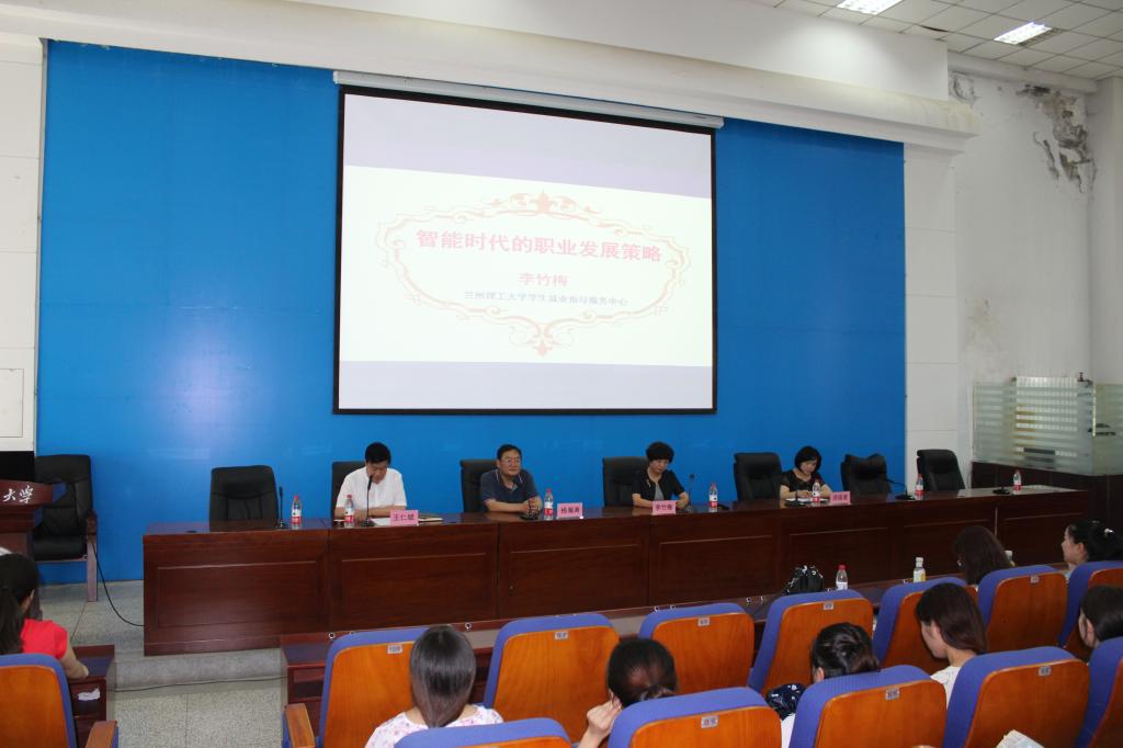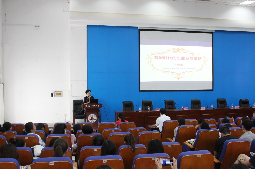 6月20日下午,兰州理工大学学生就业指导服务中心主任、甘肃省就业促进会专家组成员、国家高级职业指导师李竹梅老师应学校招生就业处和77779193永利的邀请在树人楼报告厅做了题为“智能时代的职业发展策略”的就业指导报告。参加报告会的有招生就业处副处长杨海涛及就业指导办公室老师;各学院就业联络员;77779193永利党委书记王仁斌、副书记师国君、专职辅导员、班主任以及2018届毕业生。报告会由王仁斌主持。