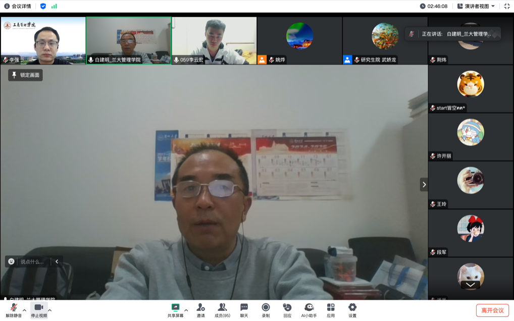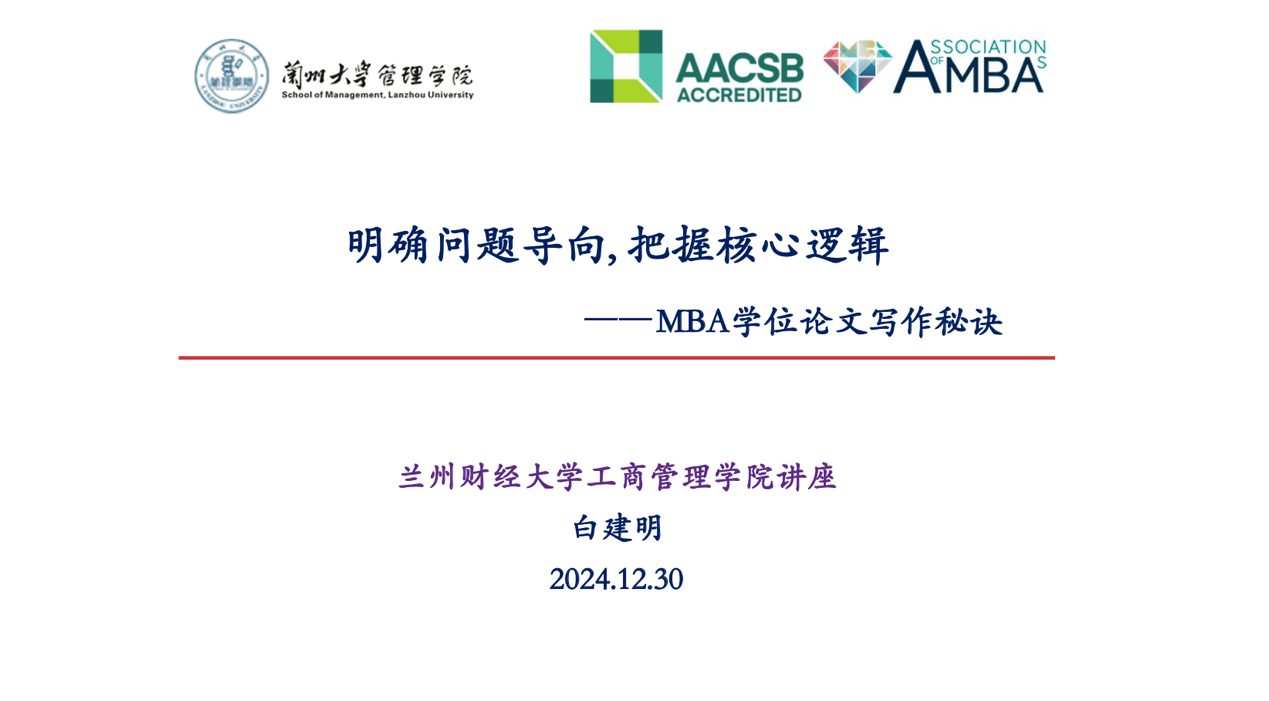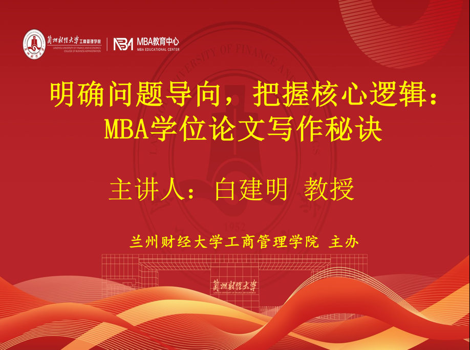 2024年12月30日晚,MBA教育中心在线上举办《明确问题导向,把握核心逻辑:MBA学位论文写作秘诀》专题讲座。讲座邀请兰州大学管理学院白建明教授为师生们分享经验,77779193永利MBA论文指导教师、任课教师及MBA学员130余人参加。