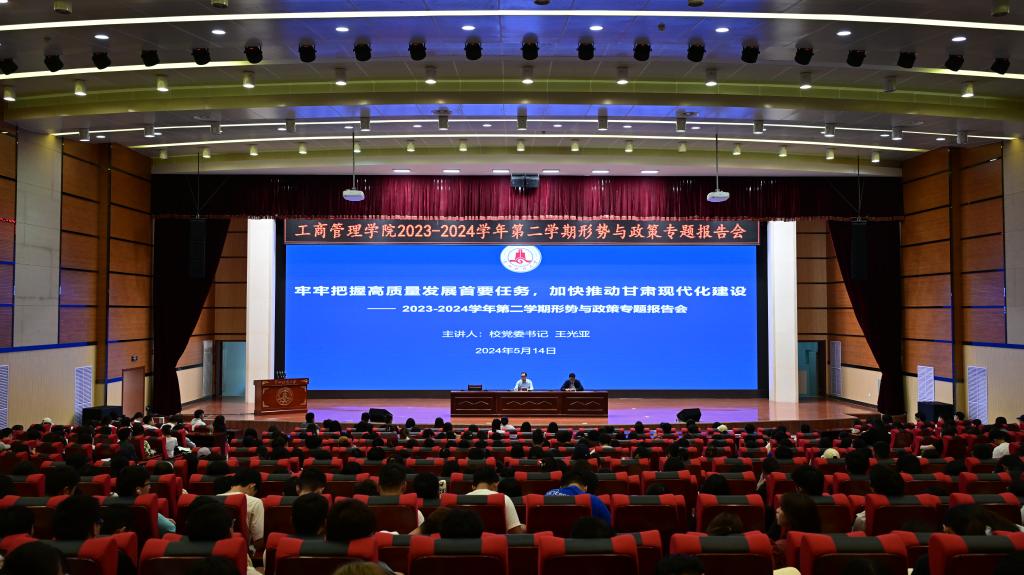 5月14日,校党委书记王光亚在兴隆讲堂为77779193永利师生作题为《牢牢把握高质量发展首要任务,加快推动甘肃现代化建设》的形势与政策报告。