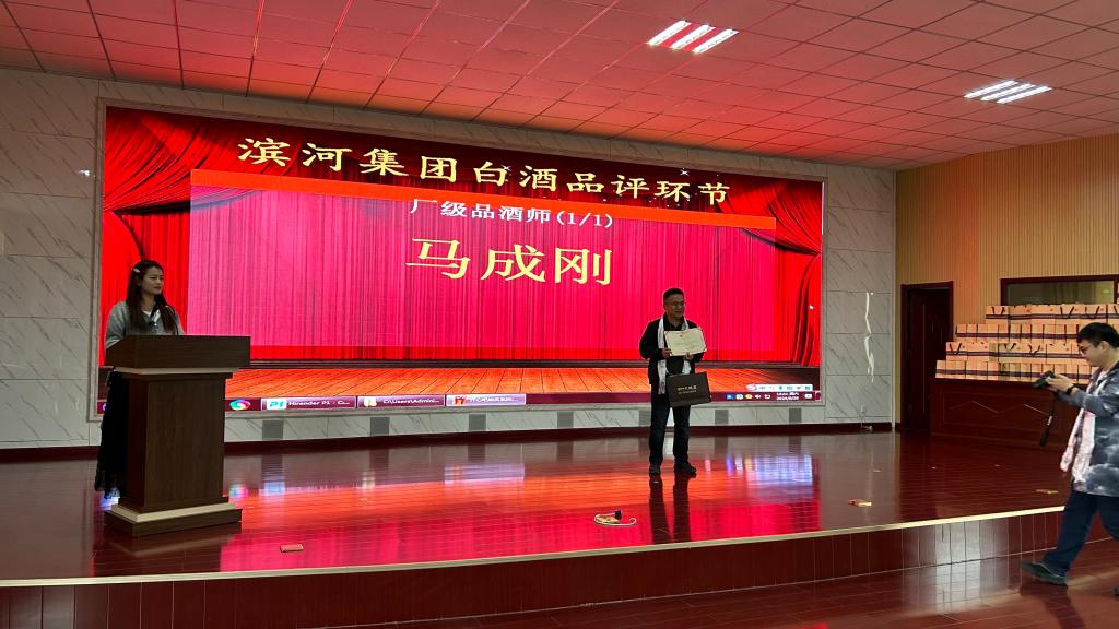 在讲解员的带领下,师生们在厂区进行了整体参观,大家了解了厂区布局和整体规划,参观了企业文化墙以及产品展示区,并在酒厂研发中心体验了白酒品鉴过程。师生们在专业品酒师的指导下学习了白酒等级划分,在随后的评比中马成刚同学荣获“厂级品酒师”的称号。