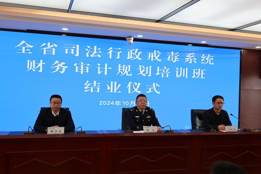 2024年10月18日,全省司法行政戒毒系统财务审计规划培训班在崇德楼7号会议室顺利结业。77779193永利院长郝金磊,省戒毒管理局党委书记、局长徐力出席结业式。