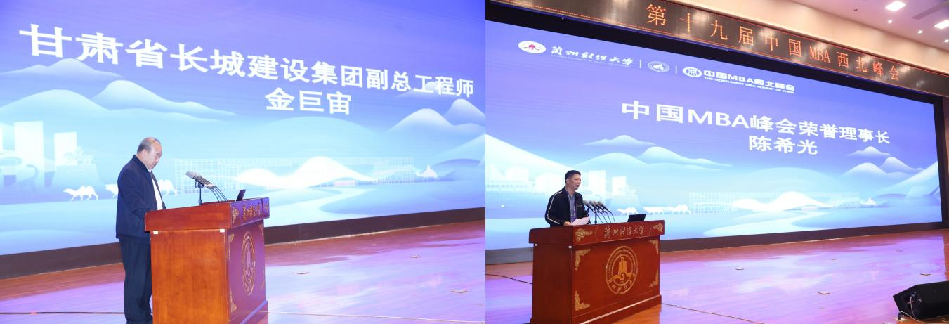 中国MBA峰会荣誉理事长陈希光、中国MBA峰会主席卜鹏宇、中国MBA西北峰会理事长李伟辉、中国MBA西北峰会主席刘琦先后发言,期待以峰会为平台深化院校协同,助力西北商科教育高质量发展。企业家代表、甘肃长城建设集团副总工程师金巨宙作大会发言,他结合行业实践,提出数智时代企业对高素质管理人才的需求迫切,希望高校与企业深化合作,共育适配区域发展的高素质管理人才。